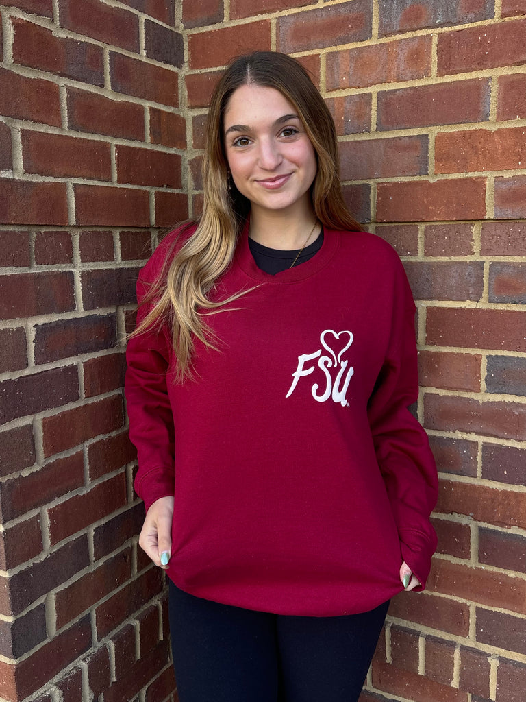 GO NOLES! Show off your Florida State University Seminoles Team Spirit with our Best Selling Graphic Sweatshirt! Perfect for Game Day or Any Day! The details: - 50/50 Preshrunk Cotton/Poly Blend - Front/Back Design - Puff Ink - Officially Licensed