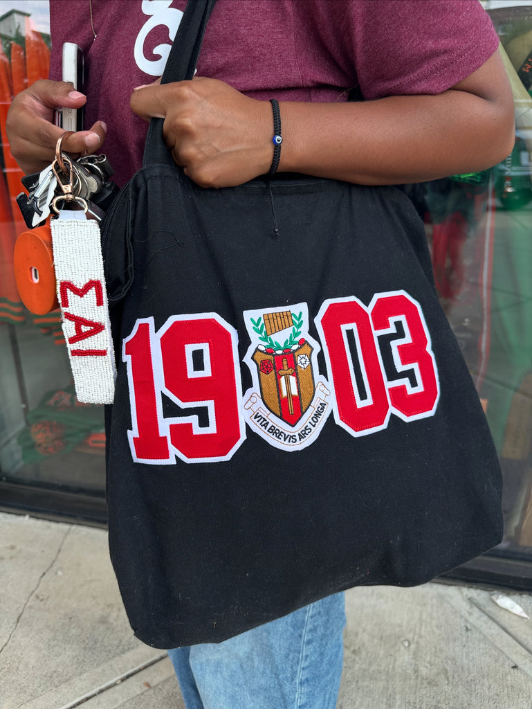 Our NEWEST Item available with our stitch founding date! This oversized black zipper tote is durable and makes the perfect bag for school to carry your laptops, notebooks and more!