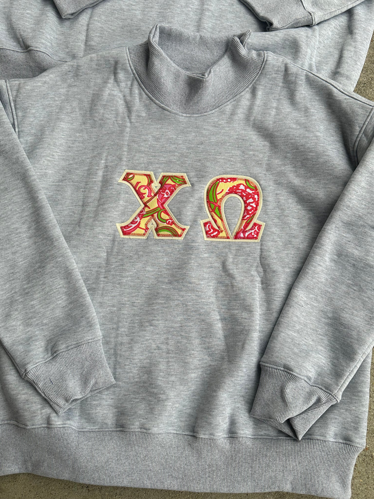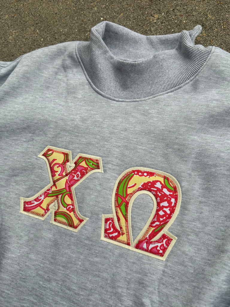 Ash Gray Sweatshirt with sorority greek letters and vintage lilly pulitzer sorority fabric letters!